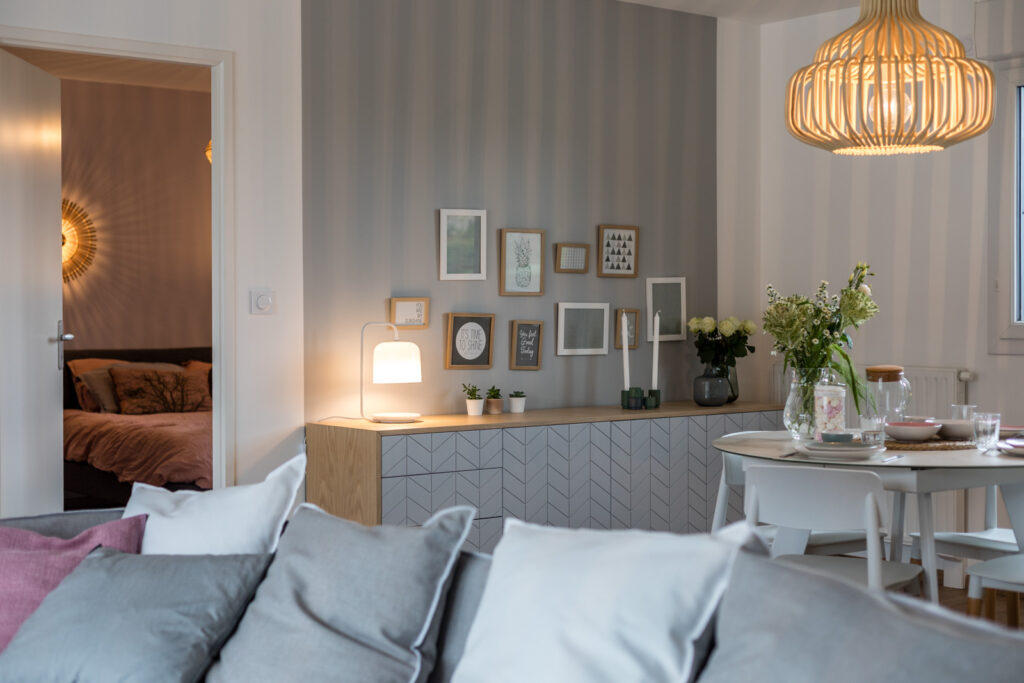 Un projet qui conjugue plusieurs univers inspirations scandinave et teintes naturelles, dans lesquels les touches colorés et meubles sur mesures subliment l’espace.